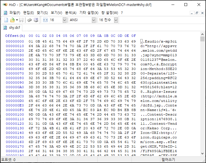 이제 복호화할 대상 DCF파일을 필요해서 안드로이드에서 다운로드했다. PC의 멜론플레이어에서 다운로드해도 상관없지만 내가 결제한 프리클럽은 모바일에서는 DCF 다운로드가 무제한이지만 PC에서는 100회로 제한된다. 그렇다. 나는 생각보다 짠돌이다. (밥 사주실분?)