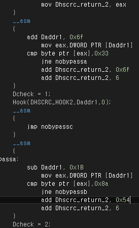 위 글에서 밝혔듯이 랜덤하게 생성되는 CRC코드는 저를 고통스럽게하여 동적으로 후킹하는 함수 DHSCRC_HOOK~ 함수를 탄생시켰습니다..