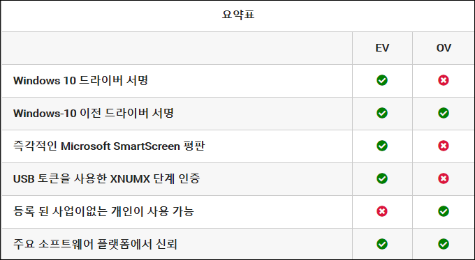 신뢰성에서는 OV 및 EV와 비교되지만 암호화 알고리즘은 동일하기 때문에 보안통신에서는 전혀 차이가 없습니다.