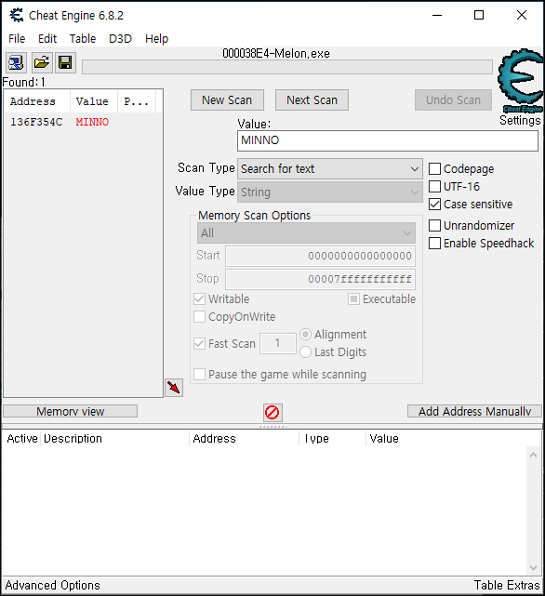 그리고 나는 멜론플레이어 프로그램에 저장된 어떠한 값을 찾는 것이므로 MINNO를 검색했다.