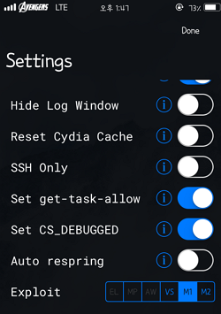 위 두개의 옵션을 활성화하고 탈옥해야한다. 그리고 실행되는 분석프로그램이( 예로 debugserver )